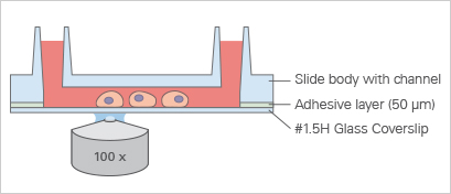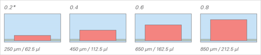 由于粘合层的存在,µ-Slide I Luer玻璃底部的通道高度比µ-Slide I Luer增加了50µm。