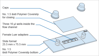 ibidi聚合物盖玻片的顶部和底部用于高分辨率光学显微镜;