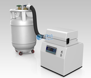 (3)开启液氮控制开关,液氮流入粉碎罐体后,再进行物理降温。一分钟左右,迅速降温到,-196度