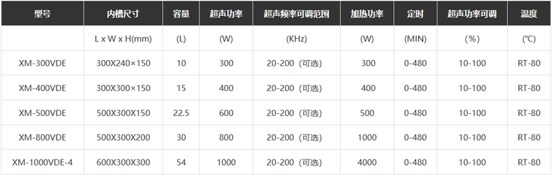 2、超声功率及频率:清洗机的每个超声换能器发射功率为50W。超声电功率10-100%任意调节;超声频率可根据要求自动切换,可选切换频率为三频 四频十一频十三频等(标准出厂模式为三频),频率可选调范围:20-200KHz可选,符合药典要求。
