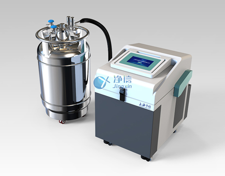 2、打开全自动液氮冷冻研磨仪 电源 连接液氮罐打开阀门 往主机里面充液氮遇冷