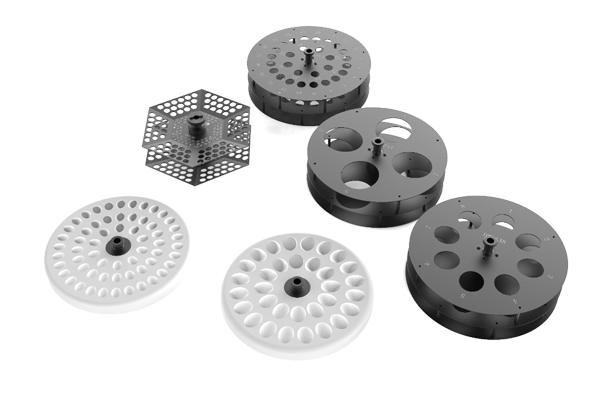 1.5 /2mL*132、1.5/2 mL*240、5 mL*72、(10 mL-15 mL)*28、50 mL*8+10 mL*8、100 mL*8、250 mL*4 双层转子:2 mL*90*2、进样瓶4 mL*60、8mL*32、可根据客户需求定制转子