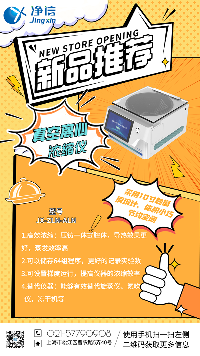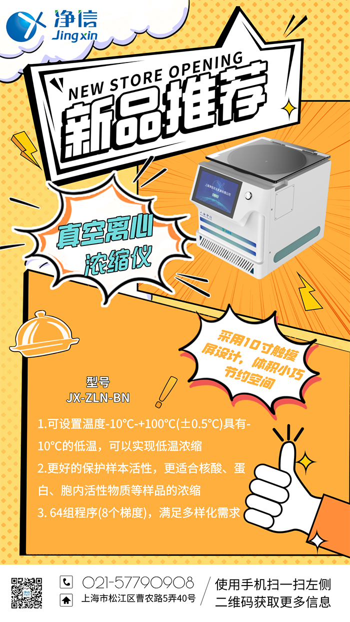 为了满足客户对真空离心浓缩仪仪器的多样化的需求,净信推出了两款新升级的产品:升级触屏款(JX-ZLN-ALN),升级冷冻款(JX-ZLN-BN),不仅外观升级:10寸的电容屏,操作更便捷;处理量不变的同时体积更小巧,能有效节约实验室的桌面空间;程序升级到64组;增加挂壁式离心成像仪,实时查看浓缩状态。