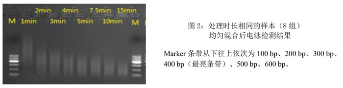 3.相同处理时长的样本混合后,琼脂糖凝胶电泳检测结果: