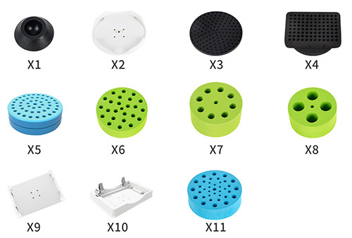 X11 | 泡沫模块,与标配托盘连用,用于放置1.5/2.0/0.5/0.2ml试管,Φ9.8mm×12个,Φ6.6mm×12个,Φ5mm×12个 | |
