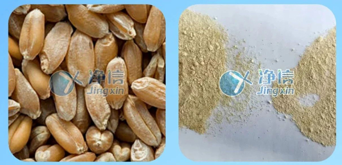 1、准备半自动锤式旋风磨JXFM110一台+小麦样品若干。