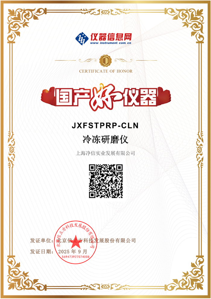在国产科学仪器崛起的浪潮中,上海净信实业发展有限公司的两款“明星产品” ——冷冻研磨仪 JXFSTPRP-CLN与冷冻耐酸碱真空离心浓缩仪 JX-ZLN-EL,凭借优异的性能、可靠的品质,成功入选 “国产好仪器” 榜单。这不仅是对上海净信技术实力的高度认可,更是国产仪器在科研领域 “硬实力” 的生动体现。