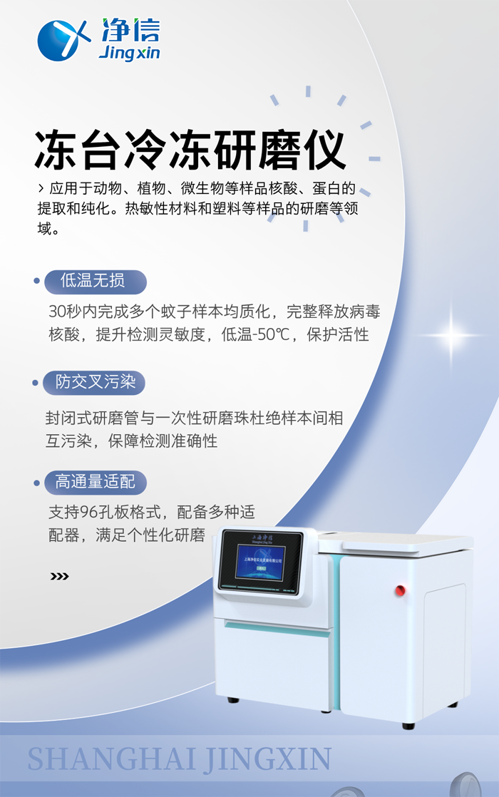 净信冻台冷冻研磨仪以标准化、自动化的研磨方案,助力疾控中心构建更快速的蚊媒病毒响应体系。它不仅解放了实验室人力,更通过提升样本处理质量,为流行病学研判提供可靠技术支撑,默默守护着公共卫生安全的第一道防线。